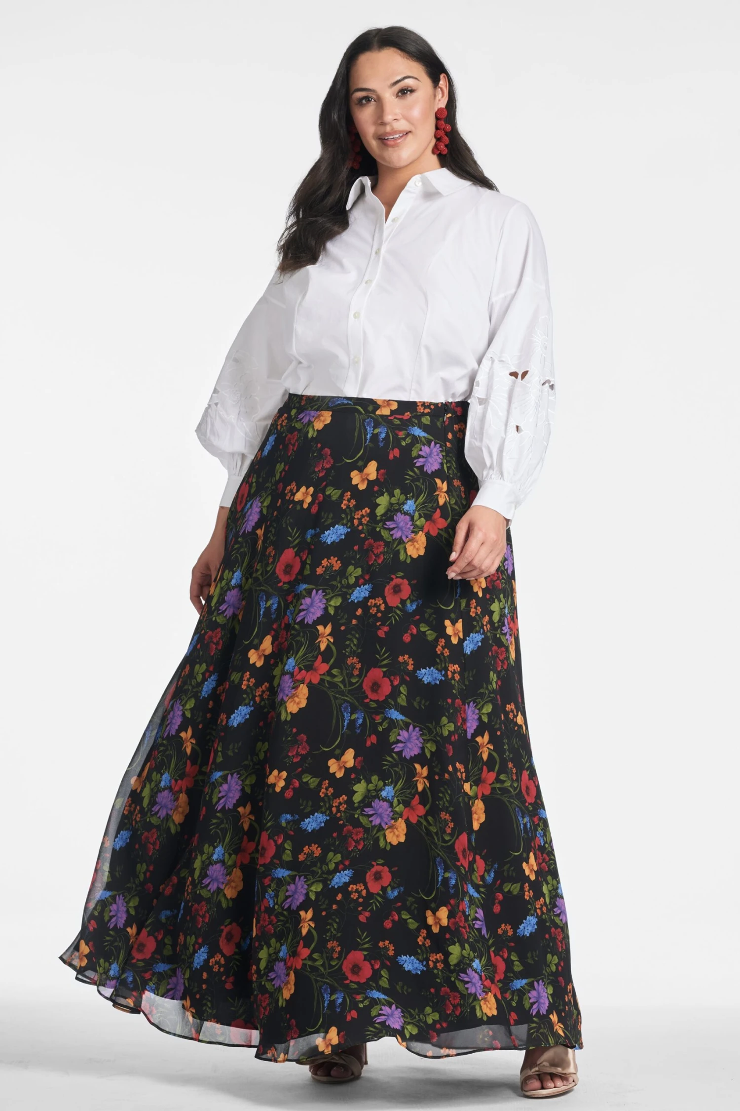 The Astor Top is a fashion essential that adds a unique touch to any wardrobe. It features an elegant, dramatic embroidered sleeve and princess seams for a flattering and refined fit. Its classic collar creates a timeless style that looks great for any occasion, and a romantic alternative to basic blouse.