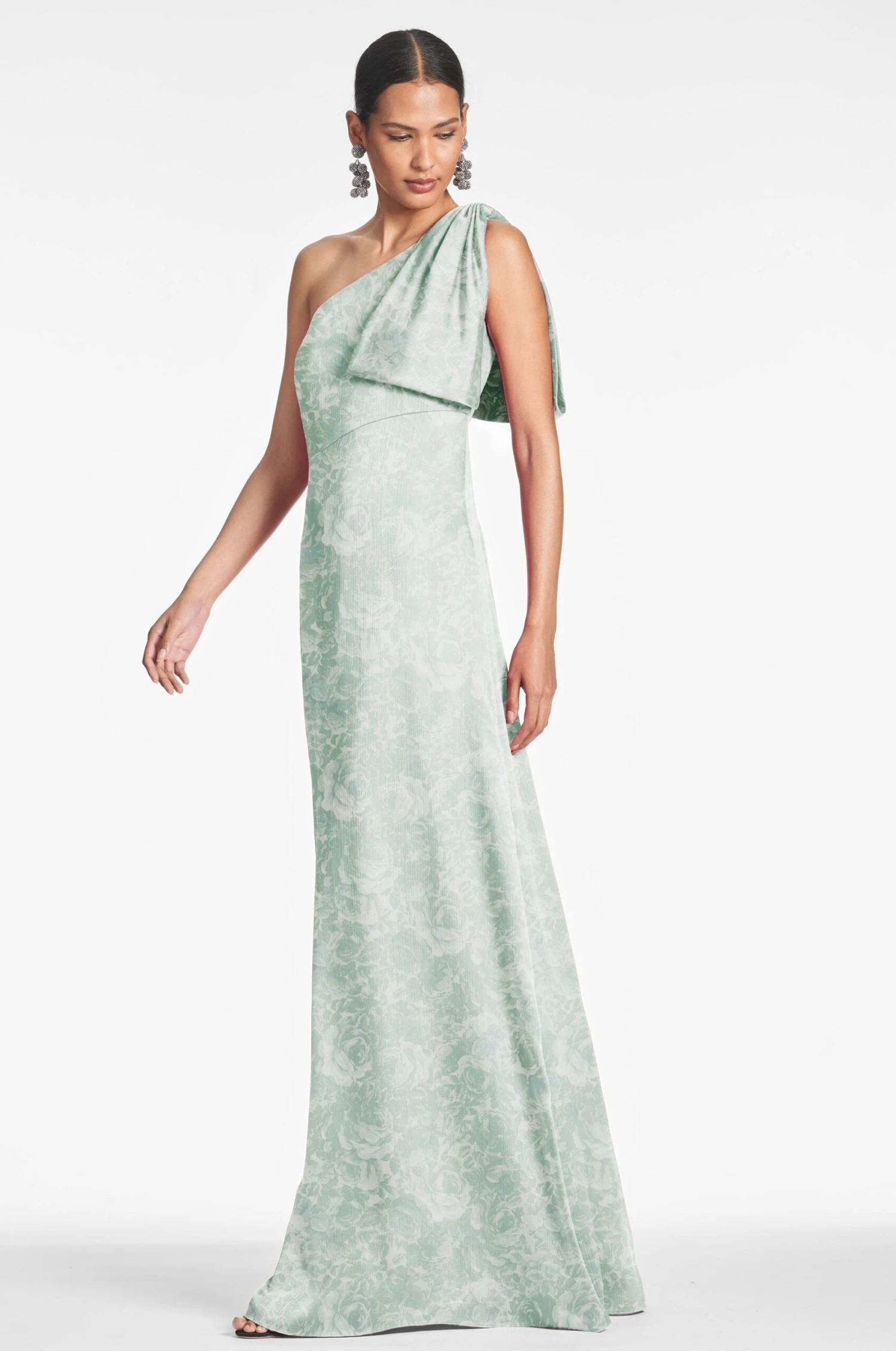 The Chelsea gown is an example of balance by design. A sleek sleeve of crinkle georgette is cut on the bias with an asymmetric seam at the waist, creating a column for curves. At the shoulder sits a hand-tucked, stitched-on collapsed bow. We design all of our Essential Social dresses with the intention that they can be enjoyed again and again. After all, a beautiful dress should be worn often and well.