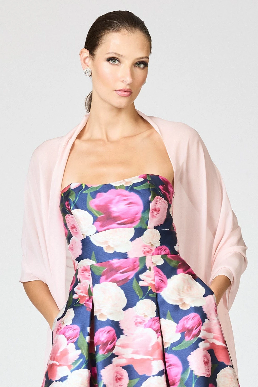 Introducing our Embellished Emmy Scarf in Petal. Delicate and dramatic, she’s crafted from 100% silk chiffon and finished with a touch of hand-applied beading along the edges. Whether draped over the shoulders or wrapped at the neck, Emmy adds movement, modesty, and a dash of sparkle to any evening look.