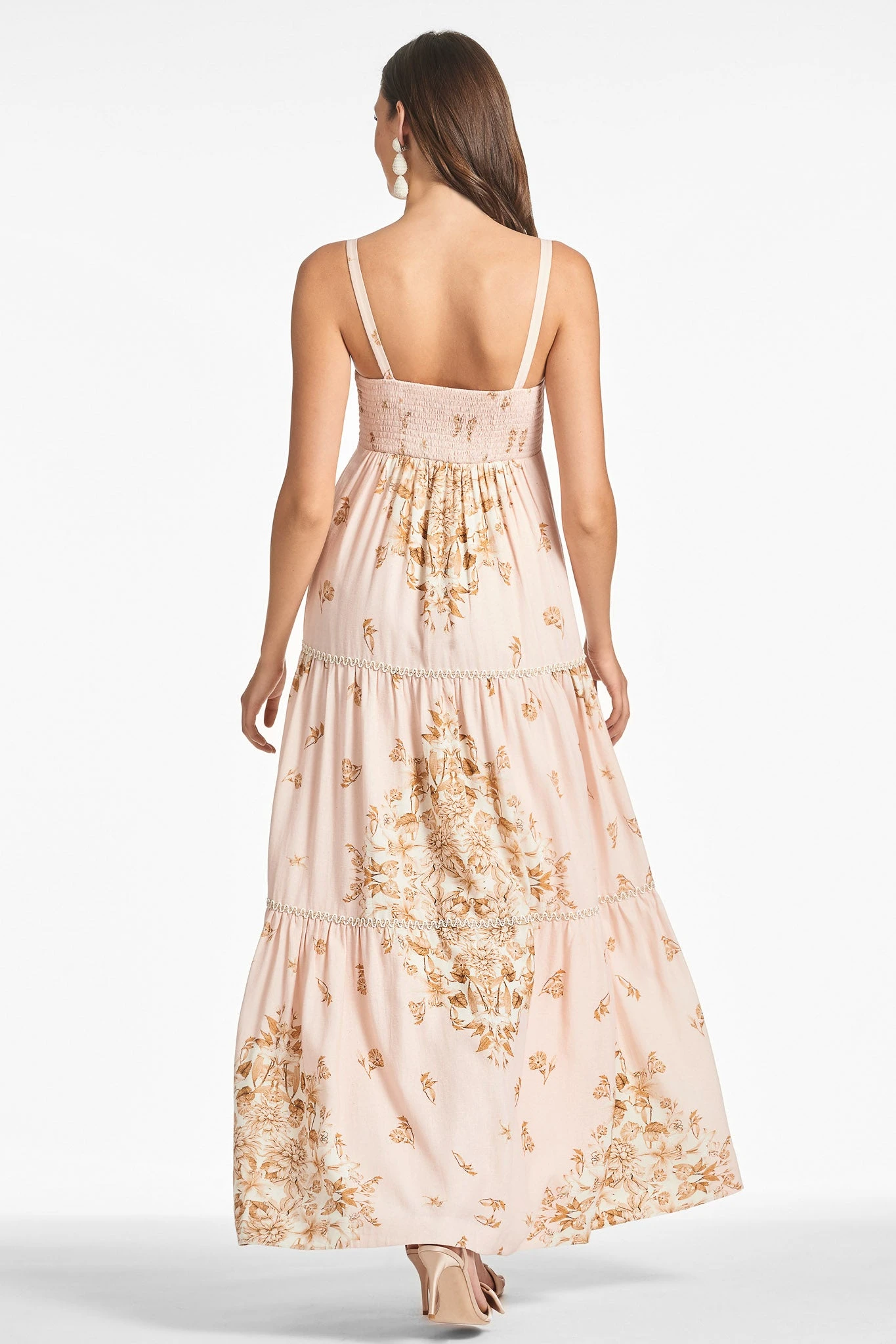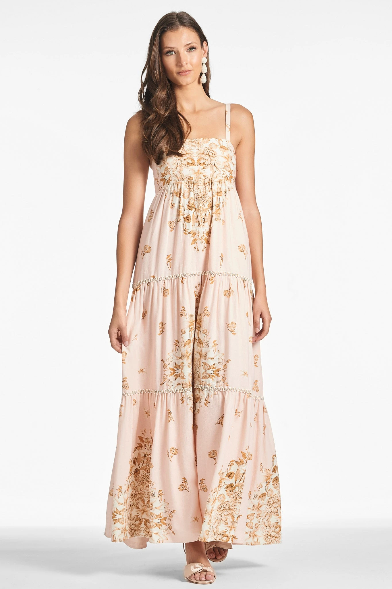 Giorno is the sundress you’ve been looking for. Made of linen viscose and in the most wearable print, this one has more than meets the eye. The tiering throughout lends itself to the most flattering shape, and there’s subtle embroidery connecting each layer. This is the one you’ll throw on year after year.