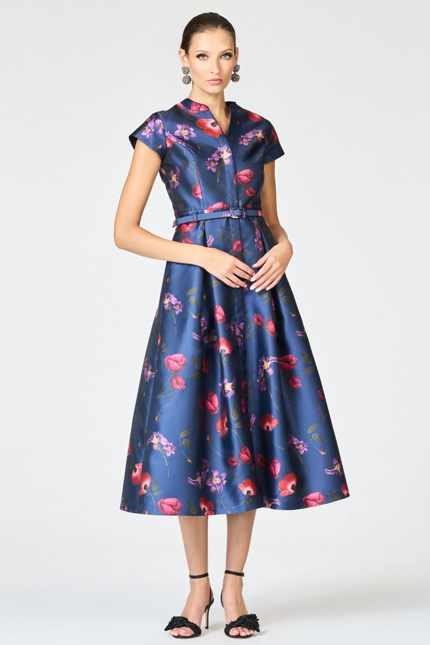 From day to night, work to happy hour, Martine is right there with you. This mid-length dress in our Midnight Jardin print features a dress-shirt style collar, cap sleeves, and a complementary skinny belt. The slight A-line skirt makes her classic, flattering, and a staple piece in your wardrobe.