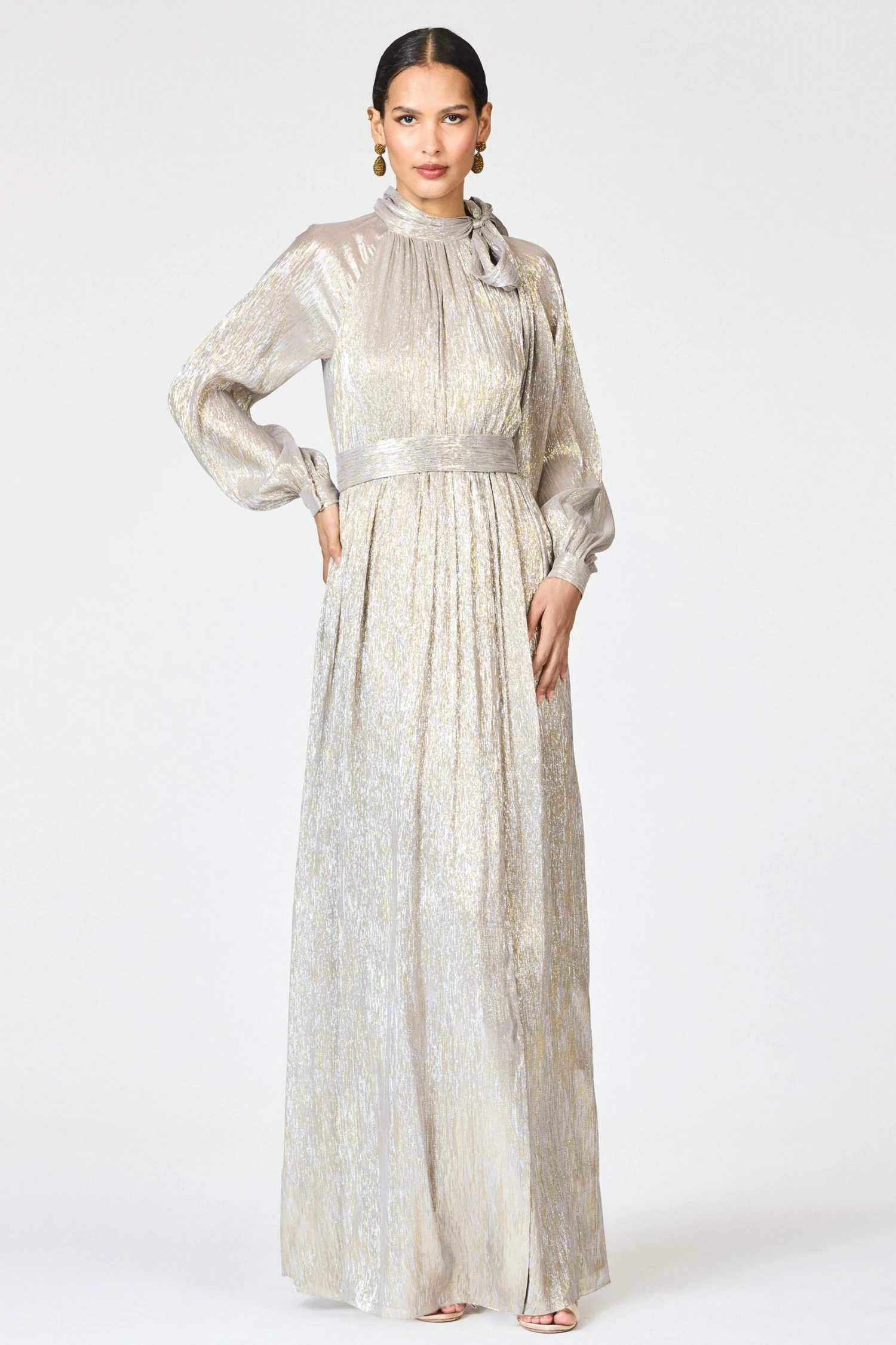 You only have to look at Vera to see her ethereal and elegant nature. She’s fluid, feminine, and flattering. A metallic lame dreamy maxi that can, and should, be the main character of any occasion.