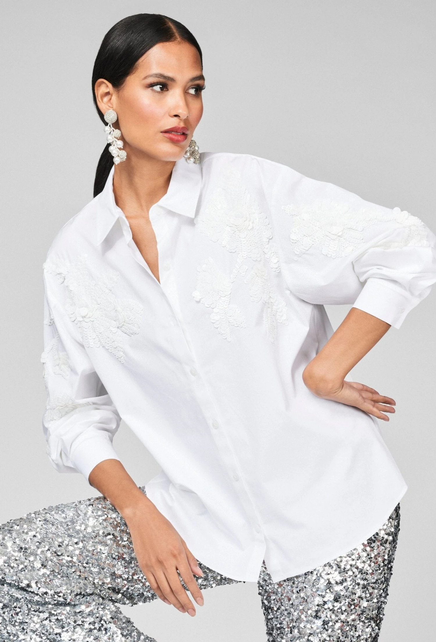 The Paradiso is an example of best of both worlds: a classic cotton summary down with intricately embroidered white sequin floral motifs throughout. She can be dressed up or dressed down, worn season after season, and one that will be a closet staple for years to come.