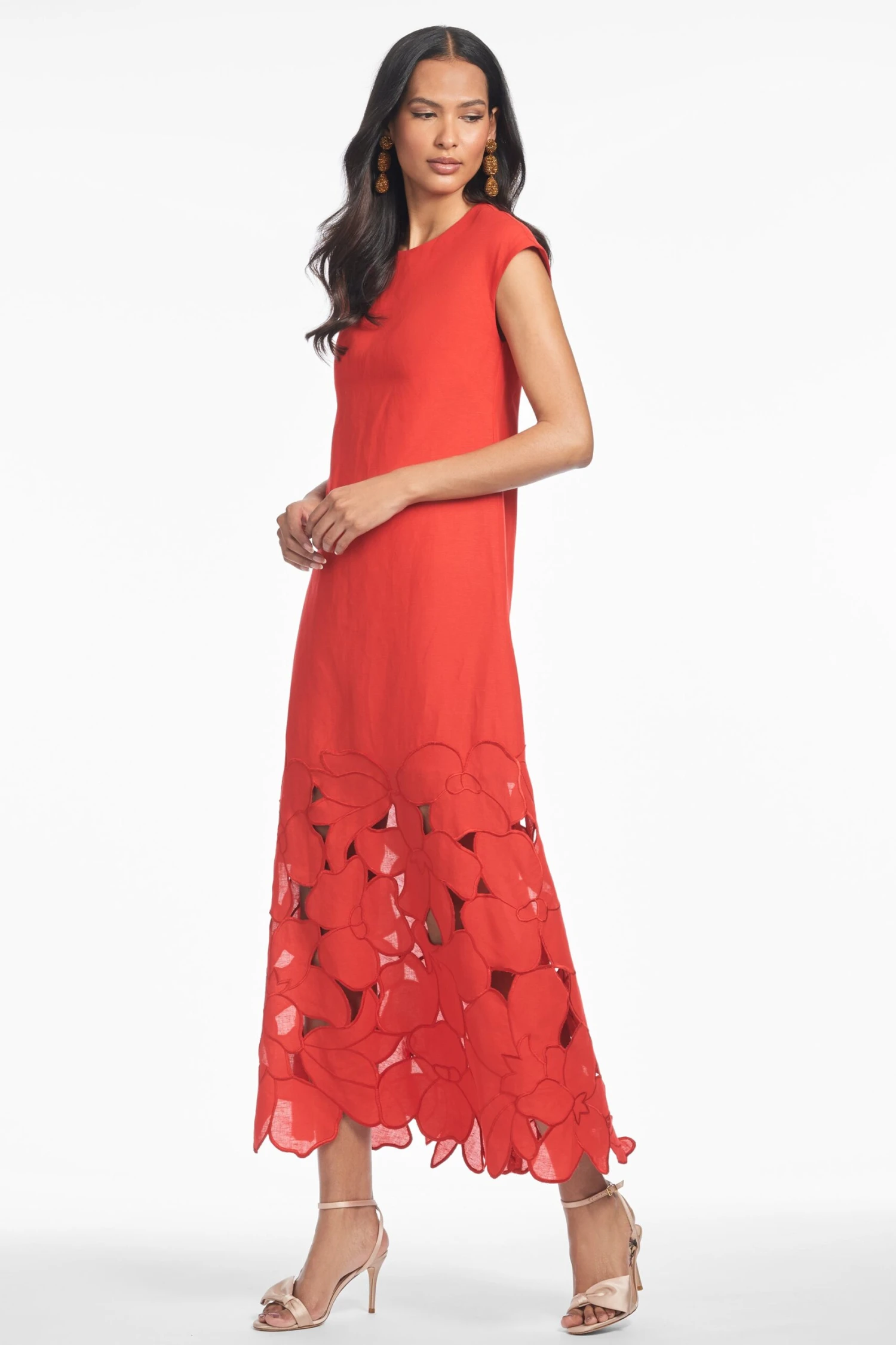 Sabette is your statement, she escorts you into any room with the ease only a piece like this can. Chic, sophisticated and wearable this linen rayon sheath style silhouette is a masterpiece of casual elegance. A crewneck, and angled cap sleeve are understated, the body of the dress unfettered and quiet until you reach the hem.