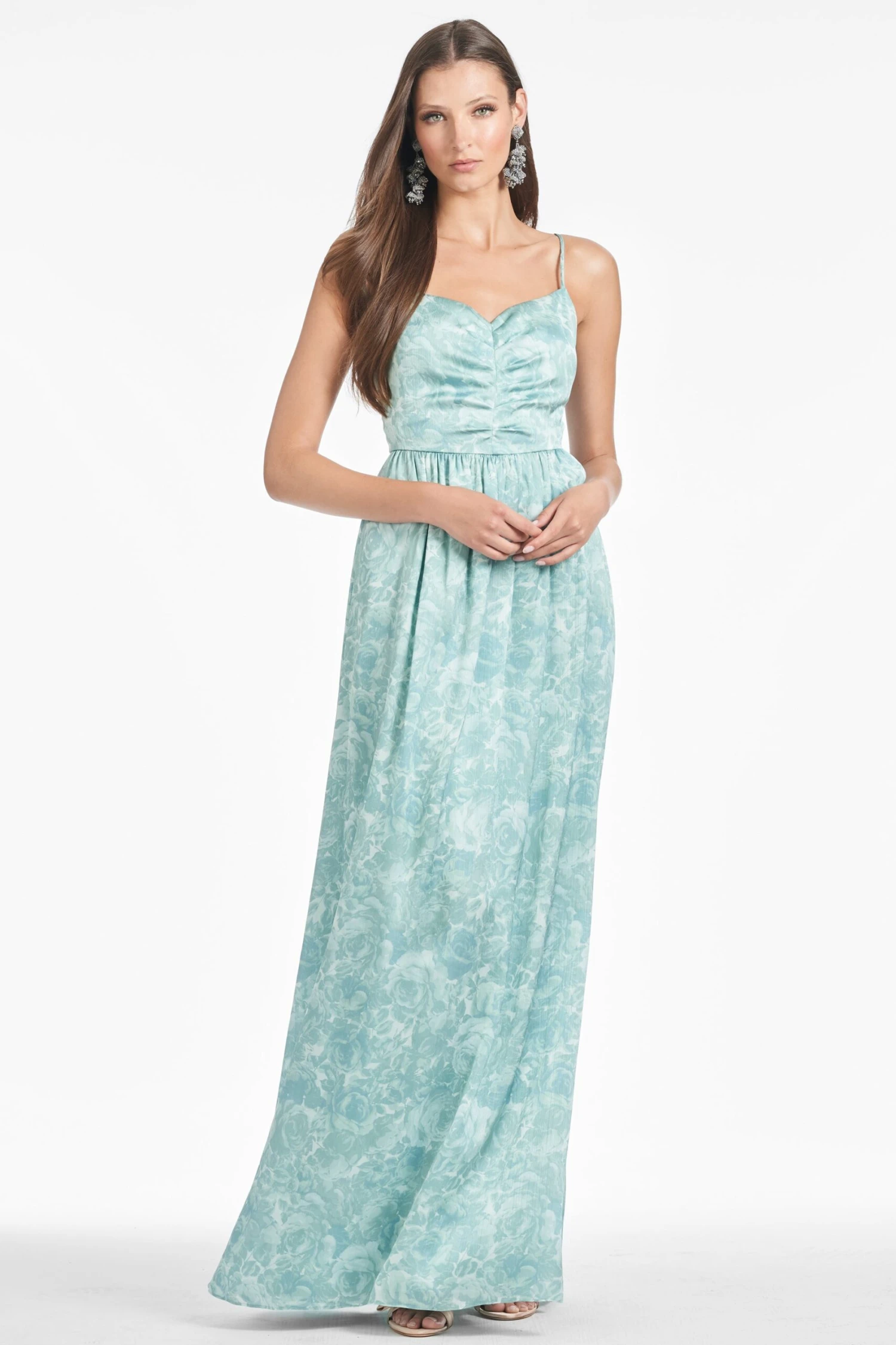 Sienna is a printed chiffon dream. She’s a classic maxi silhouette with a subtle V neckline and smocking at the back. Look no further for your perfect Spring and Summer event dress.