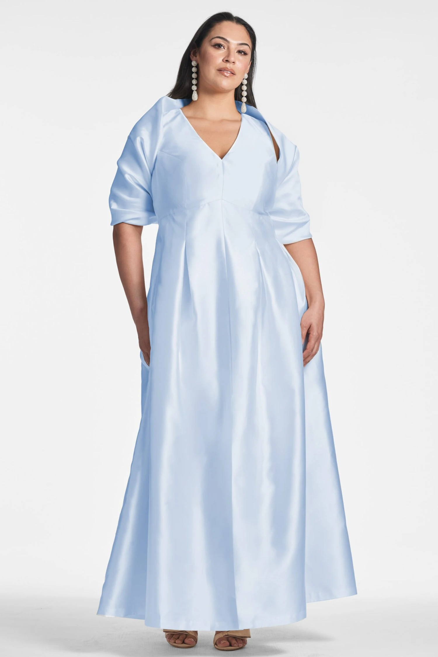 Introducing our Hug Shawl in glacial blue. Whether you’re looking for more modesty or for an added element to your look, this is the hero piece of the season. She’s made of rich Mikado and fits around you like a warm hug.